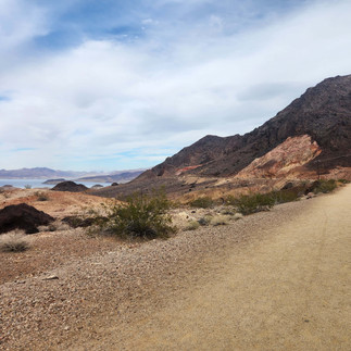 On Saturday, I did the 34-mile River Mountain Bike Trail. I did it counter clockwise. It passes mostly through undeveloped land, though in a couple places it crossed over a road (beneath the road in tunnels), and it runs along a set of electrical transmission lines for a few miles, too. It is a hilly ride! Great views and a fantastic workout!