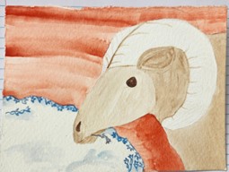 I love the Ram Horn drawing, though her view seems to distort the actual horn. I realize she seemed to want to compile multiple thoughts and feelings into one drawing, and it seemed necessary to distort the horn, as seen below on the left. When I saw this, I thought it was wonderful. But I liked Laura’s drawings of the Ram horns just as much, one example on the right. Laura did a series of horn drawings. I have two of them. Of course, I am not saying Laura is a Georgia O'Keefe. I am not comparing them on any critical artistic standard. I was traveling with Laura when she painted these. That adds significance.